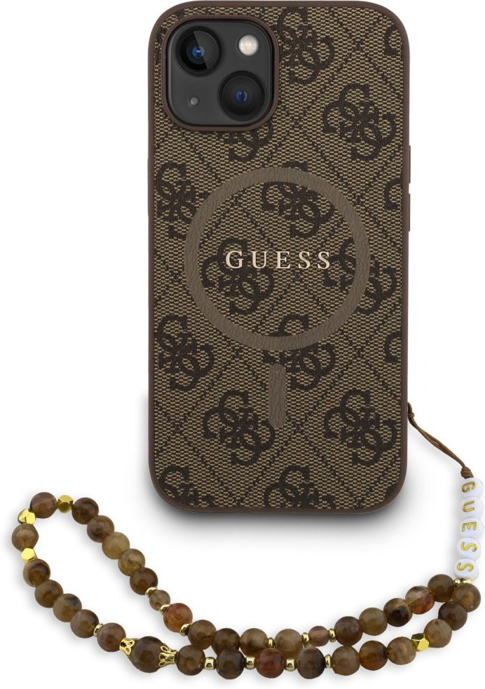 Guess PU Leather 4G Colored Ring Strap MagSafe zadný kryt je dokonalý doplnok pre váš telefón aj váš outfit, ktorý kombinuje funkčnosť a štýl v jednom. Je vyrobený z ľahkej a odolnej PU umelej kože a ponúka skvelú ochranu telefónu aj pohodlia pri používaní. Povrchová úprava krytu zaisťuje, že sa skvele drží v ruke a nešmýka sa, čo minimalizuje riziko vykĺznutia telefónu. Vďaka presnému tvaru perfektne sedí na telefóne a umožňuje ľahký prístup ku všetkým tlačidlám a konektorom. Tento kryt podporuje technológiu MagSafe, čo znamená, že je kompatibilný s bezdrôtovým nabíjaním a ďalšími MagSafe doplnkami. Guess "4G" elegantná potlač a kovové logo ponúka nielen decentný, ale aj luxusný vzhľad. Kryt je doplnený elegantným koralovým pútkom, ktorý môžete nasadiť na zápästie, aby vám telefón nevykĺzol z ruky. To vám zaručí bezpečné manipulovanie s vaším zariadením. Pokiaľ teda hľadáte kryt, ktorý kombinuje eleganciu a funkčnosť, je tento kúsok od Guess tou pravou voľbou pre vás.Kľúčové vlastnosti