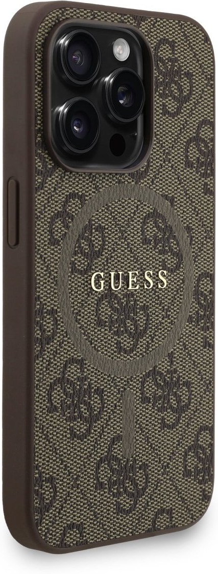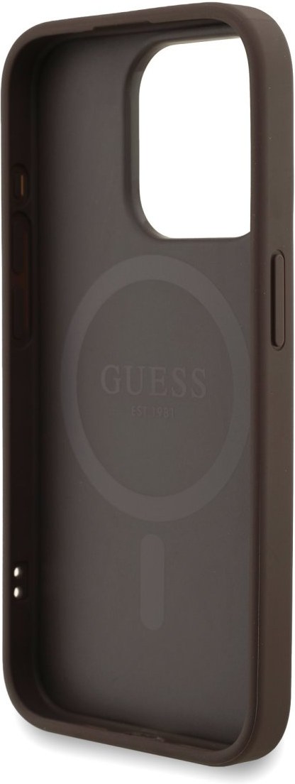 Guess PU Leather 4G Colored Ring Strap MagSafe kryt pre iPhone 15 Pro Max, hnedý