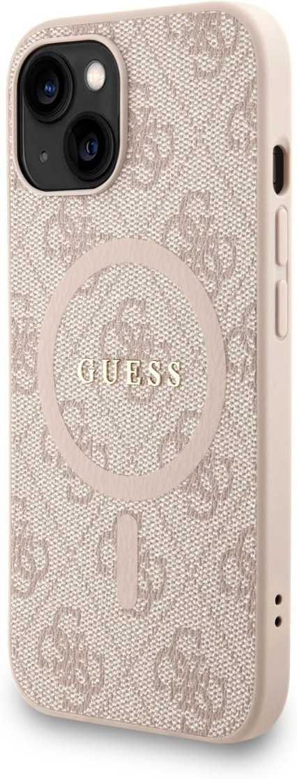 Guess PU Leather 4G Colored Ring Strap MagSafe kryt pre iPhone 15, ružový