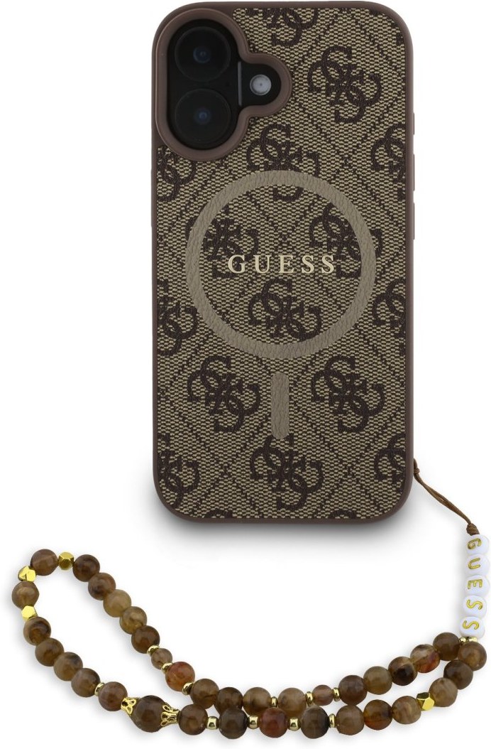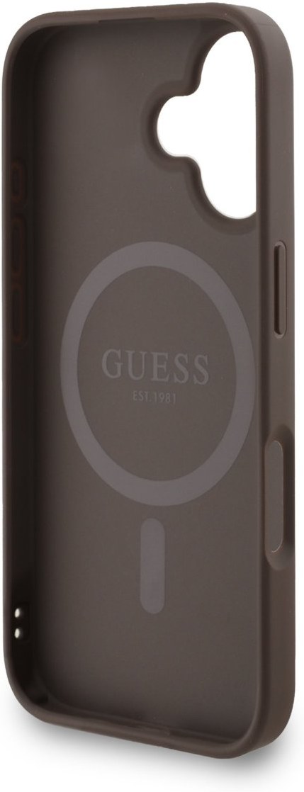 Guess PU Leather 4G Colored Ring Strap MagSafe kryt pre iPhone 16, hnedý