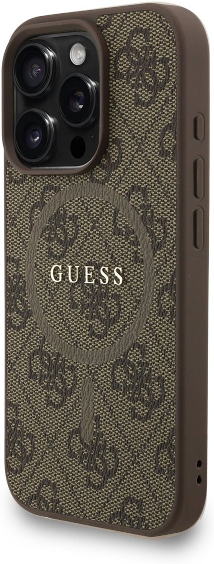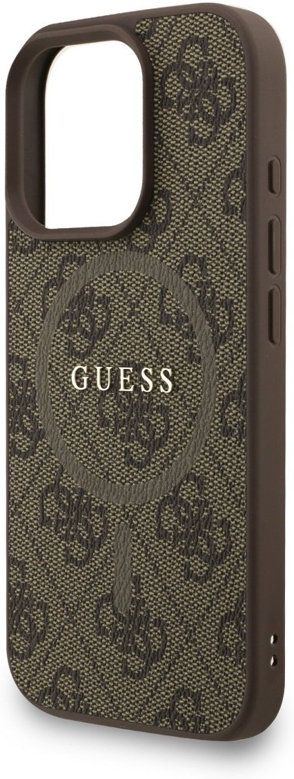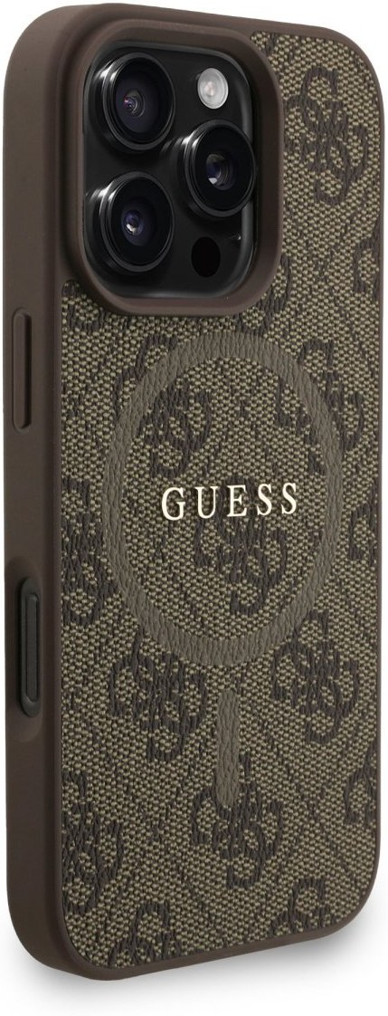 Guess PU Leather 4G Colored Ring Strap MagSafe kryt pre iPhone 16 Pro, hnedý