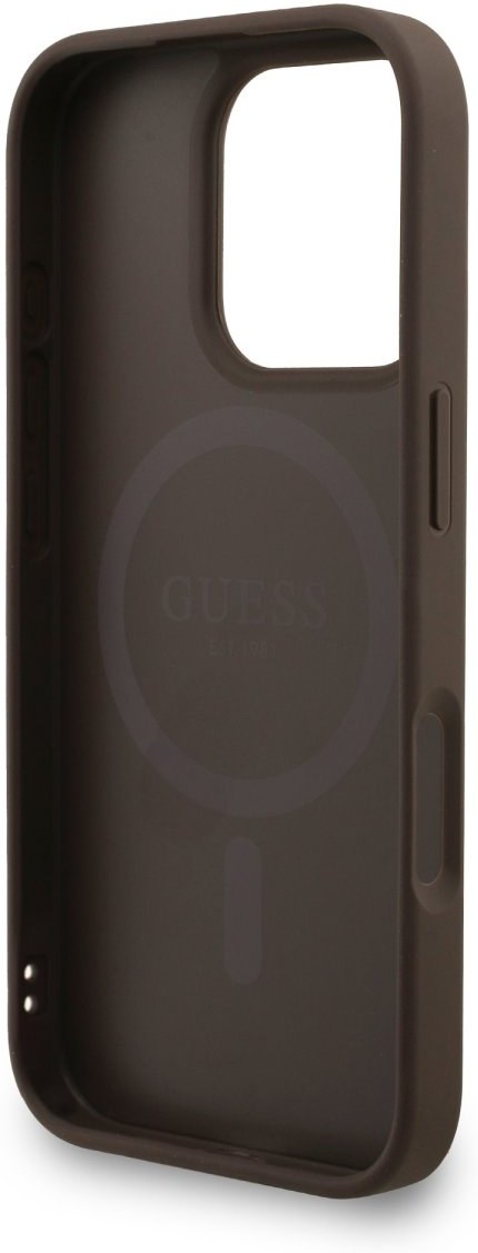 Guess PU Leather 4G Colored Ring Strap MagSafe kryt pre iPhone 16 Pro Max, hnedý