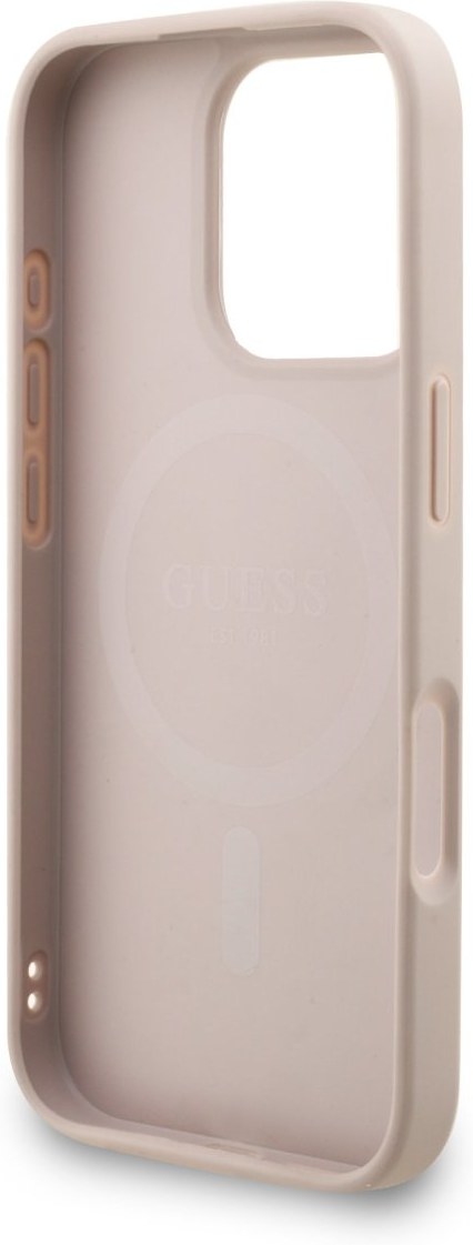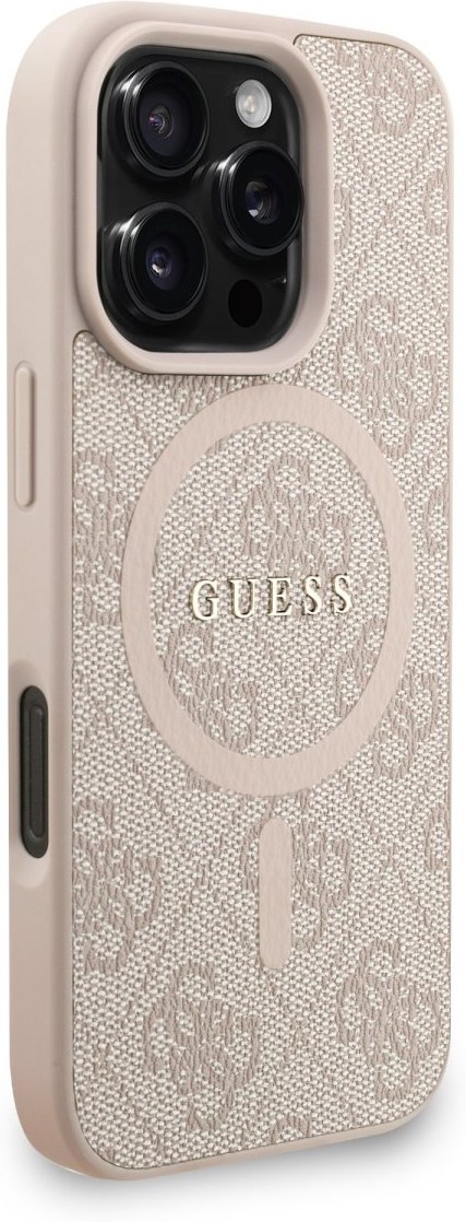 Guess PU Leather 4G Colored Ring Strap MagSafe kryt pre iPhone 16 Pro, ružový