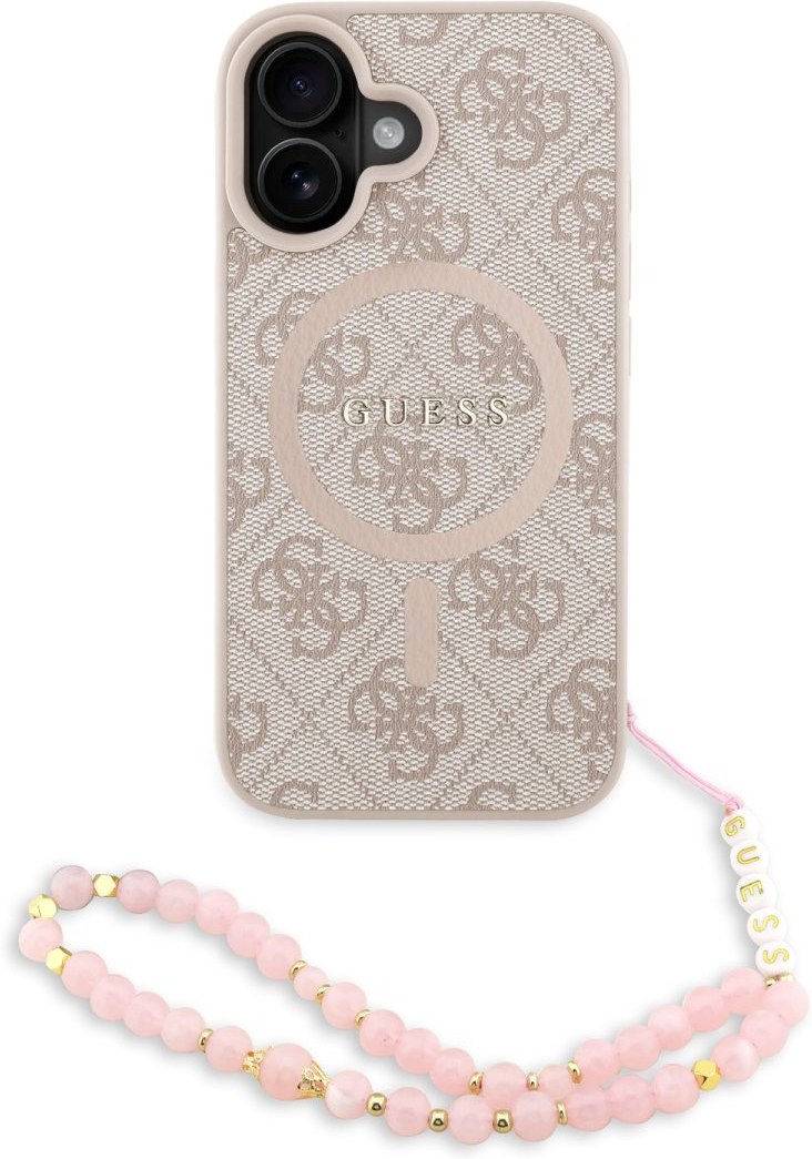 Guess PU Leather 4G Colored Ring Strap MagSafe kryt pre iPhone 16, ružový