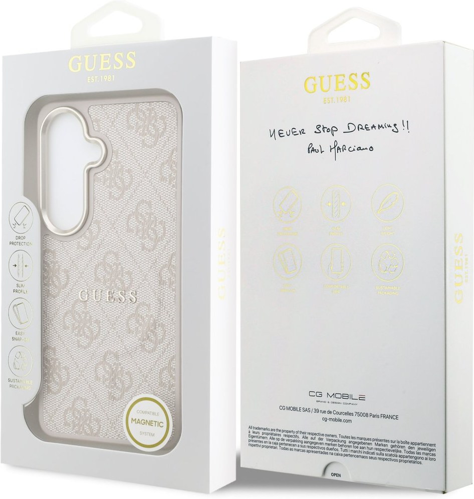 Guess PU Leather 4G Gold Frame Magnetic kryt pre Samsung Galaxy S26+, ružový