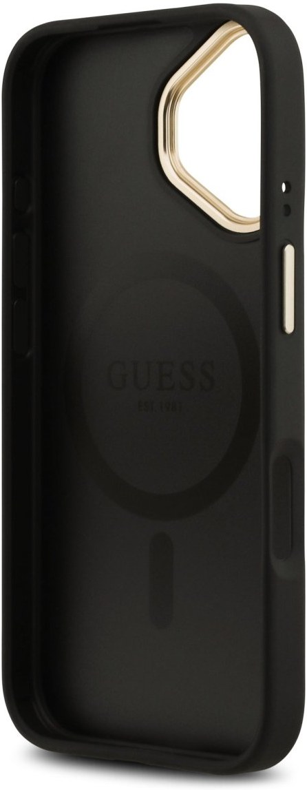 Guess PU Leather 4G Gold Frame MagSafe kryt pre iPhone 17, čierny