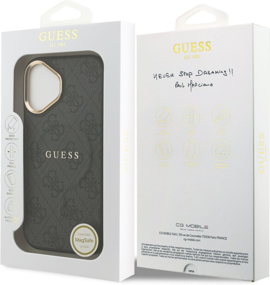 Guess PU Leather 4G MagSafe zadný kryt je dokonalý doplnok pre váš telefón aj váš outfit, ktorý kombinuje funkčnosť a štýl v jednom. Je vyrobený z ľahkej a odolnej PU umelej kože a ponúka skvelú ochranu telefónu aj pohodlia pri používaní. Povrchová úprava krytu zaisťuje, že sa skvele drží v ruke a nešmýka sa, čo minimalizuje riziko vykĺznutia telefónu. Vďaka presnému tvaru perfektne sedí na telefóne a umožňuje ľahký prístup ku všetkým tlačidlám a konektorom. Tento kryt podporuje technológiu MagSafe, čo znamená, že je kompatibilný s bezdrôtovým nabíjaním a ďalšími MagSafe doplnkami. Guess „4G“ elegantná potlač ponúka luxusný vzhľad. Rámček zadného fotoaparátu je zdobený elegantným zlatým prevedením, ktorý krytu dodáva ešte luxusnejší vzhľad. Pokiaľ teda hľadáte kryt, ktorý kombinuje eleganciu a funkčnosť, je tento kúsok od Guess tou pravou voľbou pre vás.Kľúčové vlastnosti