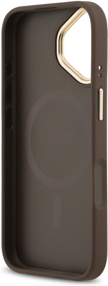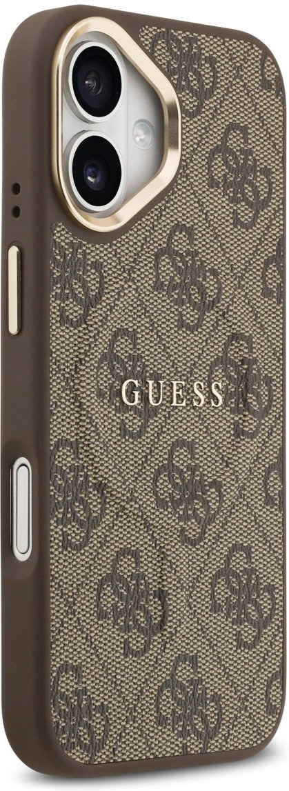 Guess PU Leather 4G Gold Frame MagSafe kryt pre iPhone 17, hnedý