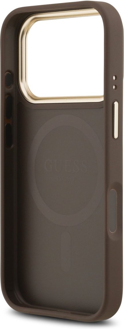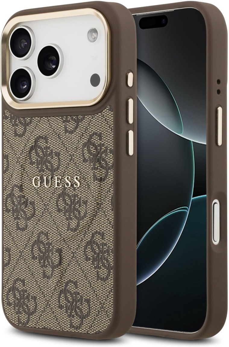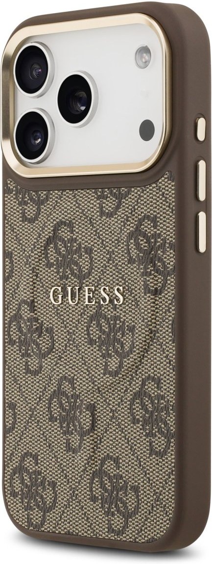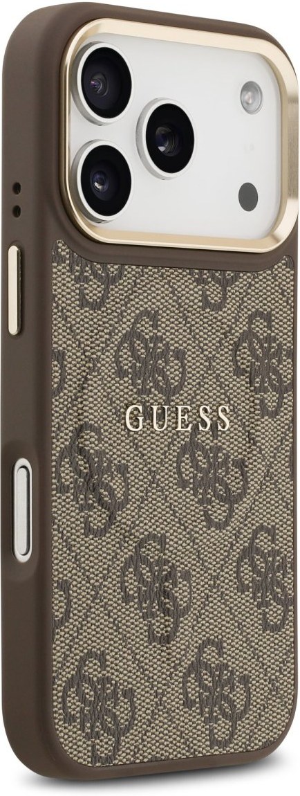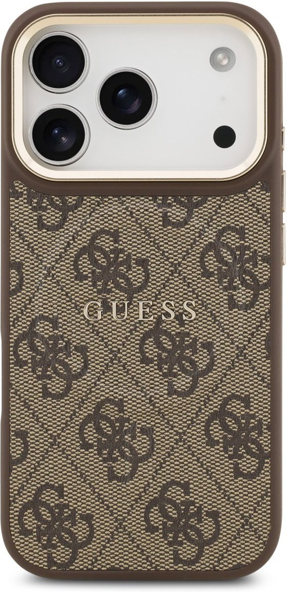 Guess PU Leather 4G Gold Frame MagSafe kryt pre iPhone 17 Pro, hnedý