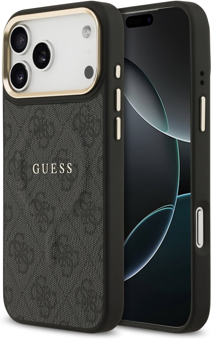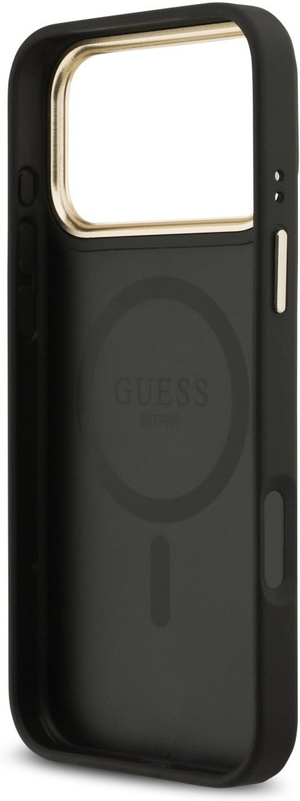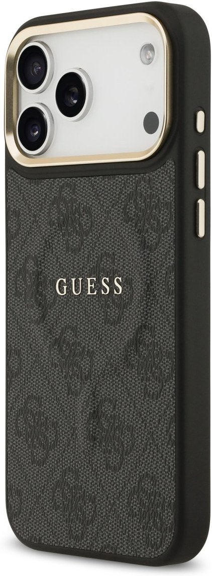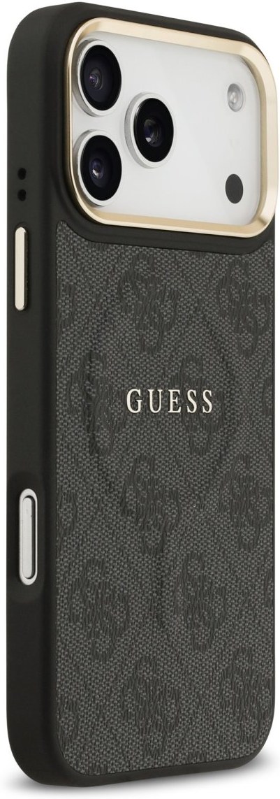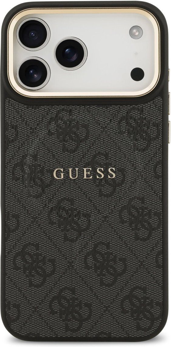 Guess PU Leather 4G Gold Frame MagSafe kryt pre iPhone 17 Pro Max, čierny