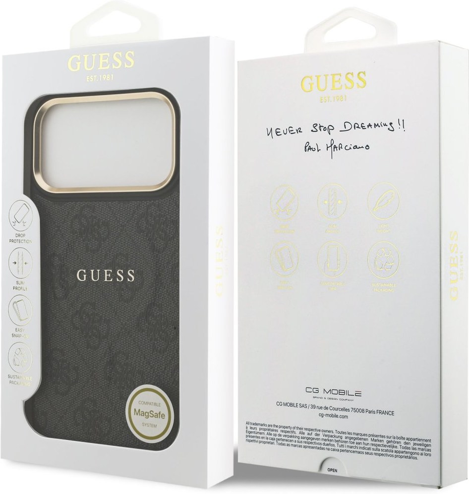 Guess PU Leather 4G MagSafe zadný kryt je dokonalý doplnok pre váš telefón aj váš outfit, ktorý kombinuje funkčnosť a štýl v jednom. Je vyrobený z ľahkej a odolnej PU umelej kože a ponúka skvelú ochranu telefónu aj pohodlia pri používaní. Povrchová úprava krytu zaisťuje, že sa skvele drží v ruke a nešmýka sa, čo minimalizuje riziko vykĺznutia telefónu. Vďaka presnému tvaru perfektne sedí na telefóne a umožňuje ľahký prístup ku všetkým tlačidlám a konektorom. Tento kryt podporuje technológiu MagSafe, čo znamená, že je kompatibilný s bezdrôtovým nabíjaním a ďalšími MagSafe doplnkami. Guess „4G“ elegantná potlač ponúka luxusný vzhľad. Rámček zadného fotoaparátu je zdobený elegantným zlatým prevedením, ktorý krytu dodáva ešte luxusnejší vzhľad. Pokiaľ teda hľadáte kryt, ktorý kombinuje eleganciu a funkčnosť, je tento kúsok od Guess tou pravou voľbou pre vás.Kľúčové vlastnosti