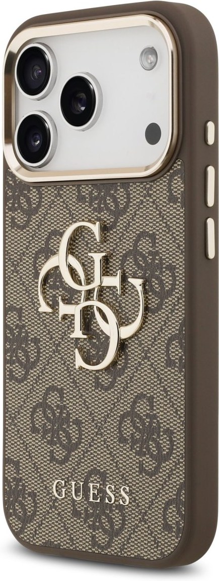 Guess PU Leather 4G Metal Logo Gold Frame kryt pre iPhone 17 Pro, hnedý