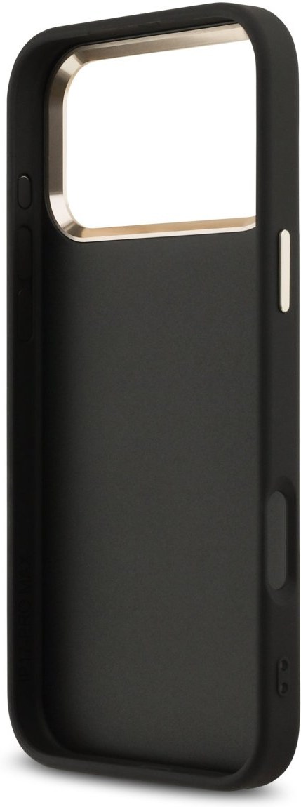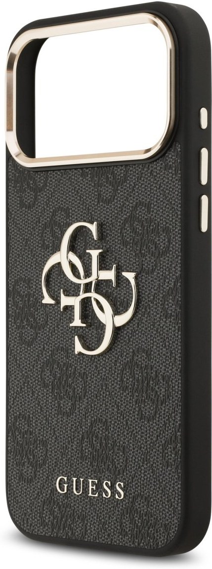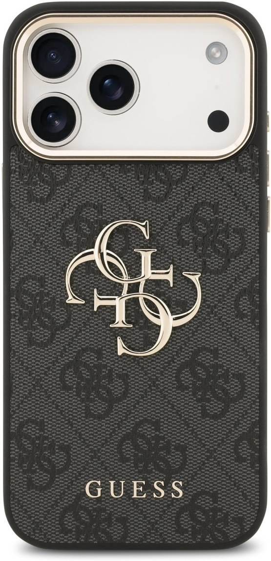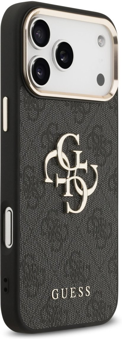 Guess PU Leather 4G Metal Logo Gold Frame kryt pre iPhone 17 Pro Max, čierny