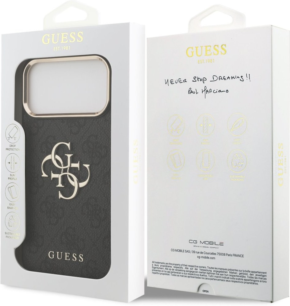Guess PU Leather 4G Metal Gold Gold Frame zadný kryt je dokonalý doplnok pre váš telefón aj váš outfit, ktorý kombinuje funkčnosť a štýl v jednom. Je vyrobený z ľahkej a odolnej PU umelej kože a ponúka skvelú ochranu a pohodlie pri používaní. Povrchová úprava krytu zaisťuje, že sa skvele drží v ruke a nešmýka sa, čo minimalizuje riziko vykĺznutia telefónu. Vďaka presnému tvaru perfektne sedí na telefóne a umožňuje ľahký prístup ku všetkým tlačidlám a konektorom. Guess „4G“ elegantná potlač a výrazné 4G kovové logo ponúka nielen luxusný, ale aj nápaditý vzhľad. Rámček zadného fotoaparátu je zdobený elegantným zlatým prevedením, ktorý krytu dodáva ešte luxusnejší vzhľad. Pokiaľ teda hľadáte kryt, ktorý kombinuje eleganciu a funkčnosť, je tento kúsok od Guess tou pravou voľbou pre vás.Kľúčové vlastnosti