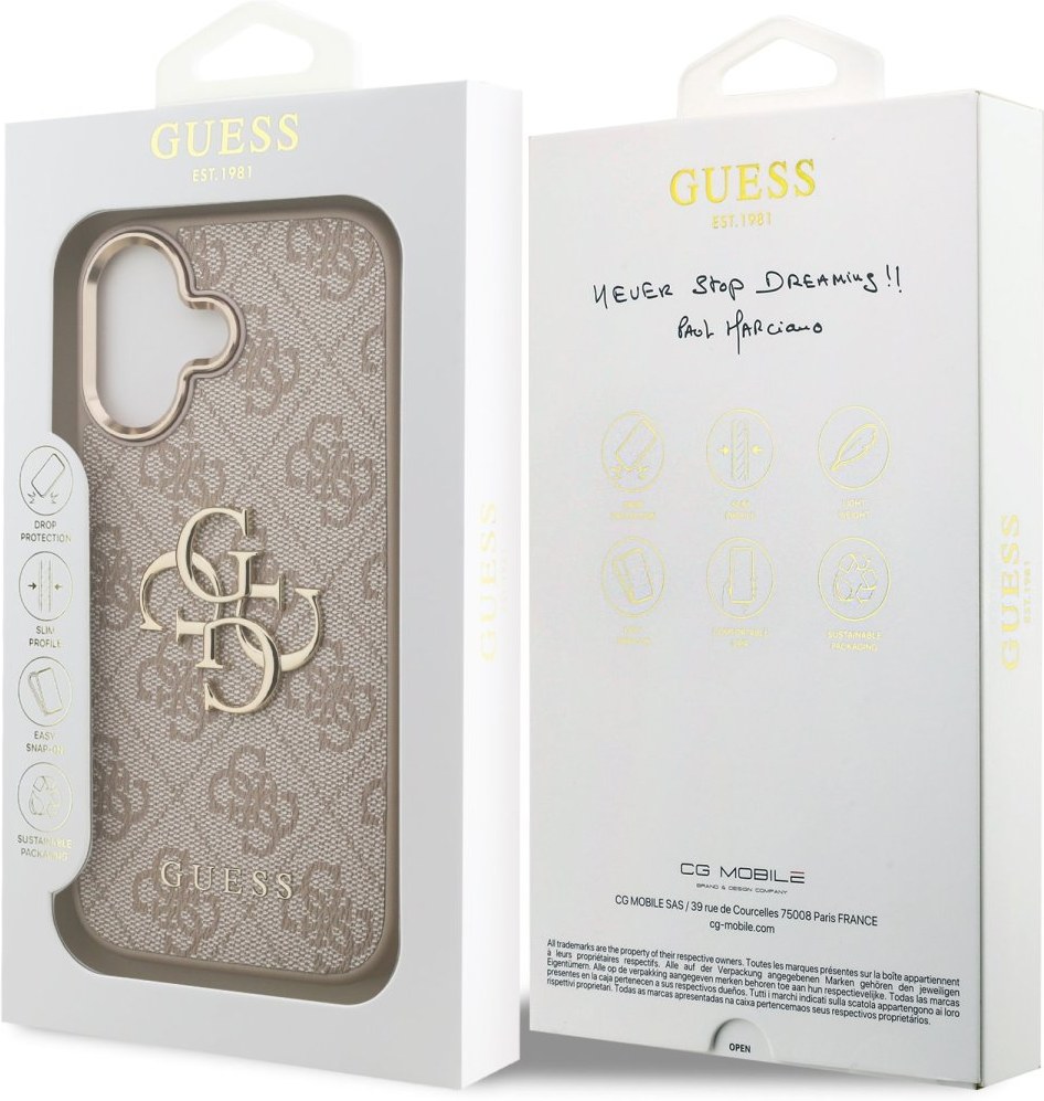 Guess PU Leather 4G Metal Gold Gold Frame zadný kryt je dokonalý doplnok pre váš telefón aj váš outfit, ktorý kombinuje funkčnosť a štýl v jednom. Je vyrobený z ľahkej a odolnej PU umelej kože a ponúka skvelú ochranu a pohodlie pri používaní. Povrchová úprava krytu zaisťuje, že sa skvele drží v ruke a nešmýka sa, čo minimalizuje riziko vykĺznutia telefónu. Vďaka presnému tvaru perfektne sedí na telefóne a umožňuje ľahký prístup ku všetkým tlačidlám a konektorom. Guess „4G“ elegantná potlač a výrazné 4G kovové logo ponúka nielen luxusný, ale aj nápaditý vzhľad. Rámček zadného fotoaparátu je zdobený elegantným zlatým prevedením, ktorý krytu dodáva ešte luxusnejší vzhľad. Pokiaľ teda hľadáte kryt, ktorý kombinuje eleganciu a funkčnosť, je tento kúsok od Guess tou pravou voľbou pre vás.Kľúčové vlastnosti