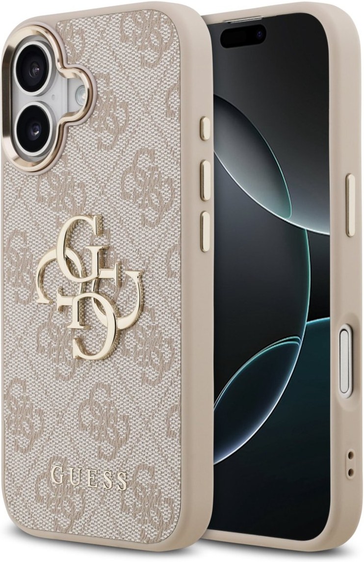 Guess PU Leather 4G Metal Logo Gold Frame kryt pre iPhone 17, ružový