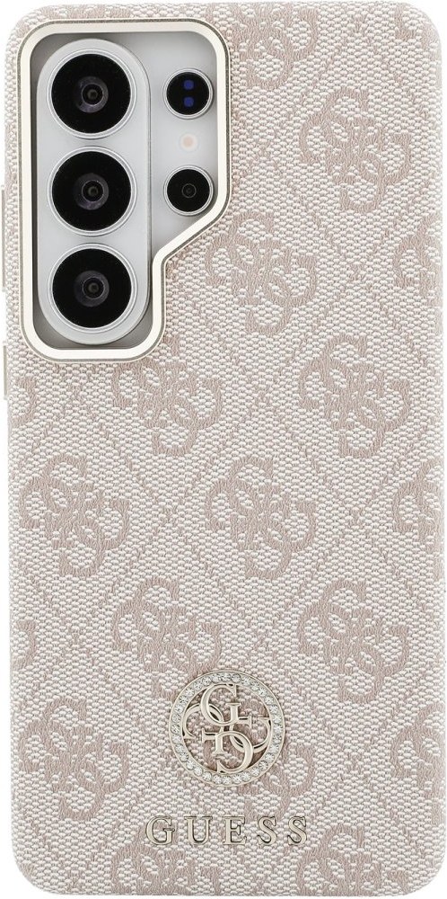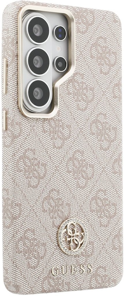Guess PU Leather 4G Strass Logo Gold Frame Magnetic kryt pre Samsung Galaxy S26 Ultra, ružový