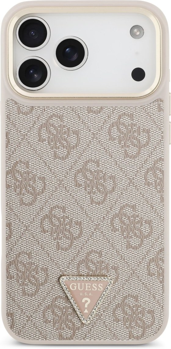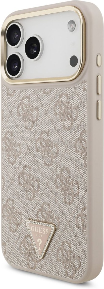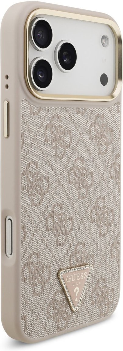 Guess PU Leather 4G Triangle Logo Gold Frame MagSafe kryt pre iPhone 17 Pro Max