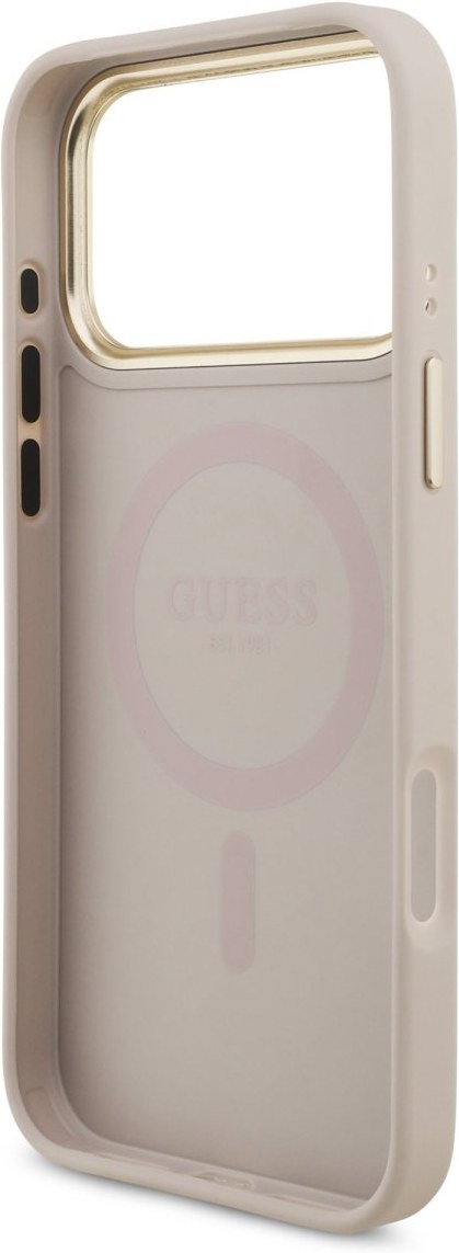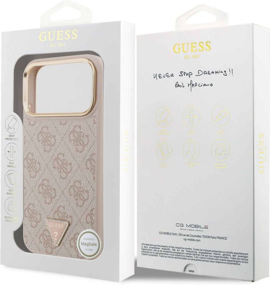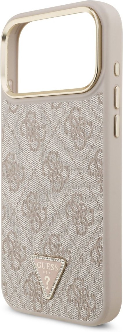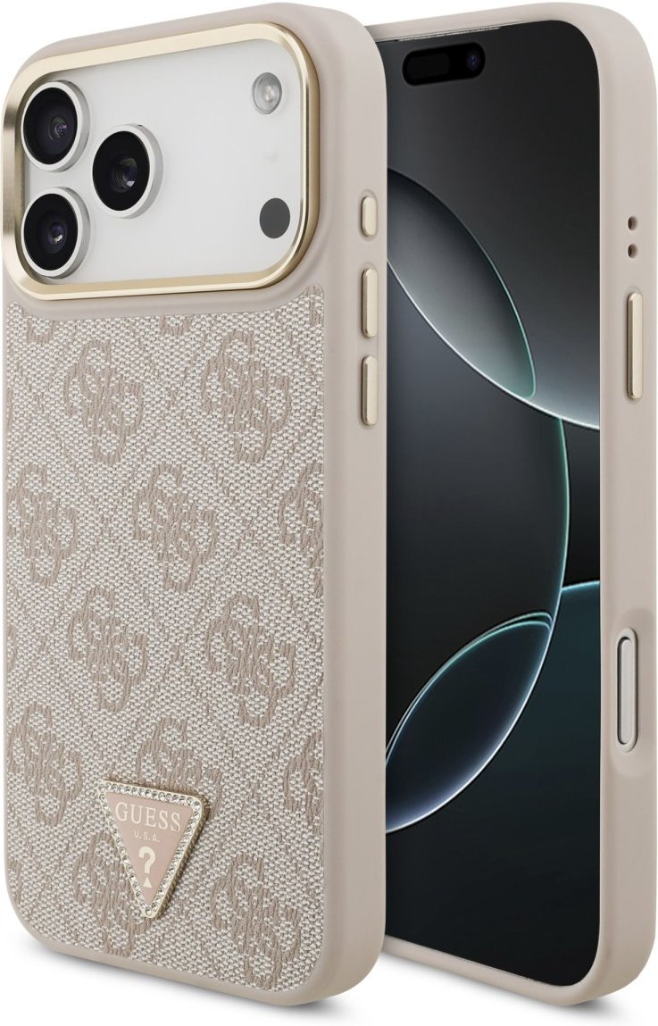 Guess PU Leather 4G Triangle Logo Gold Frame MagSafe kryt pre iPhone 17 Pro Max, ružový