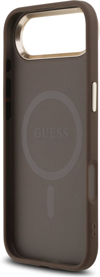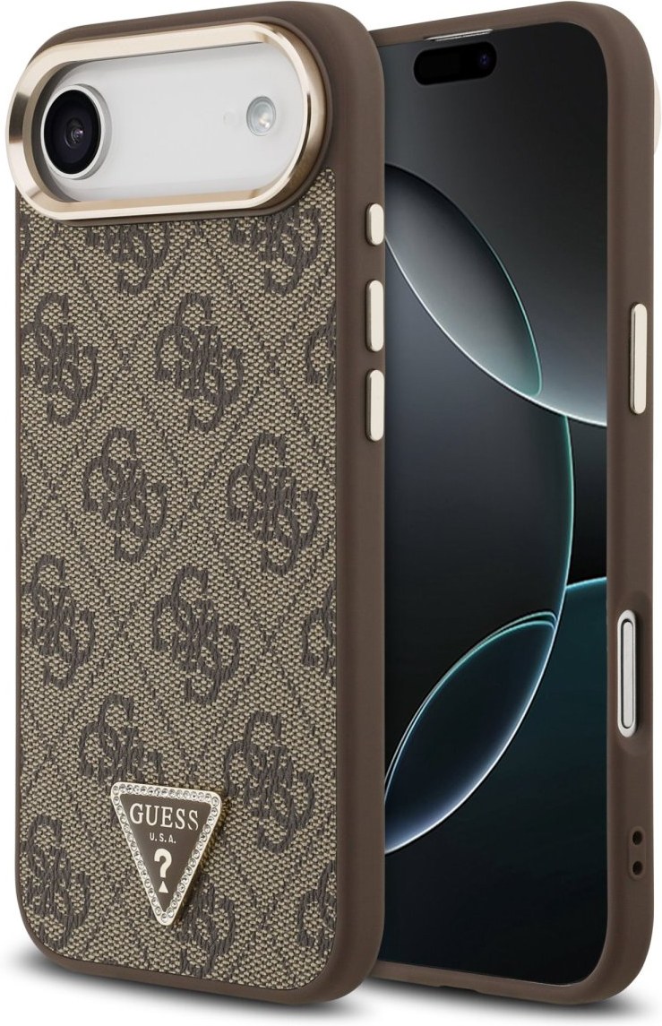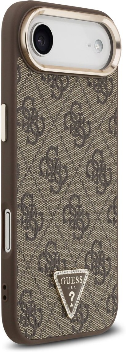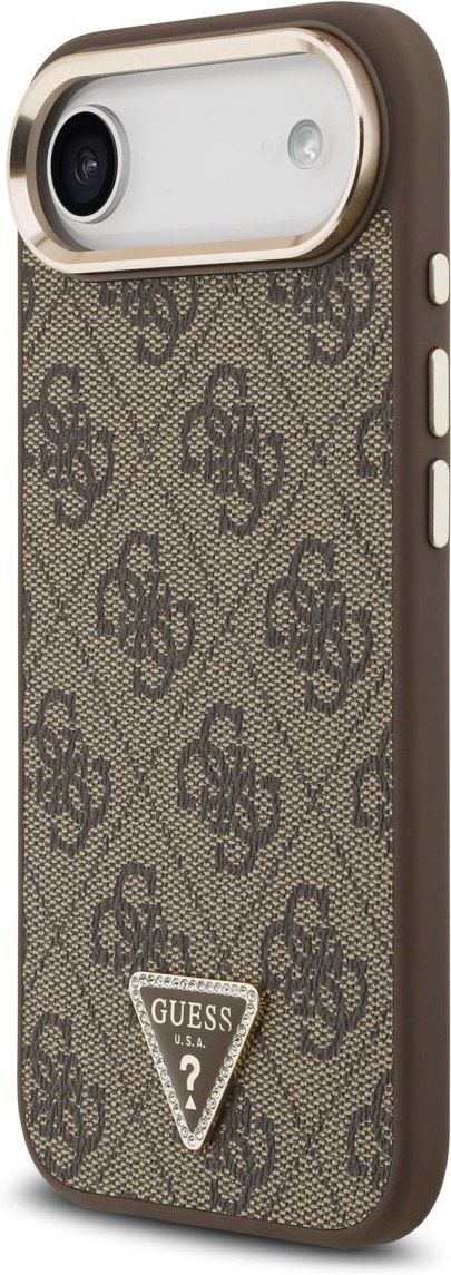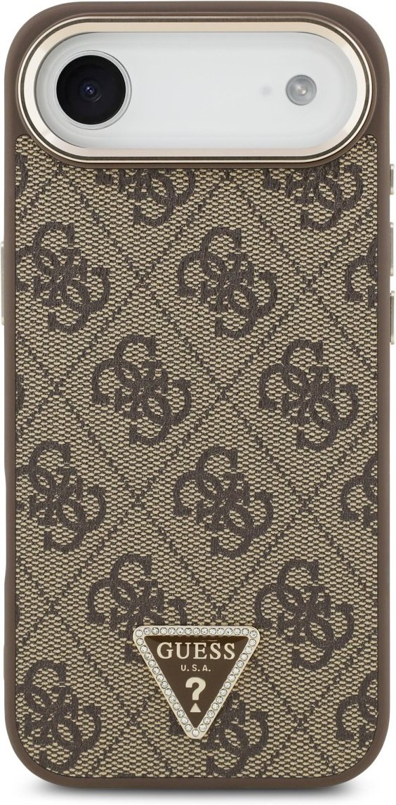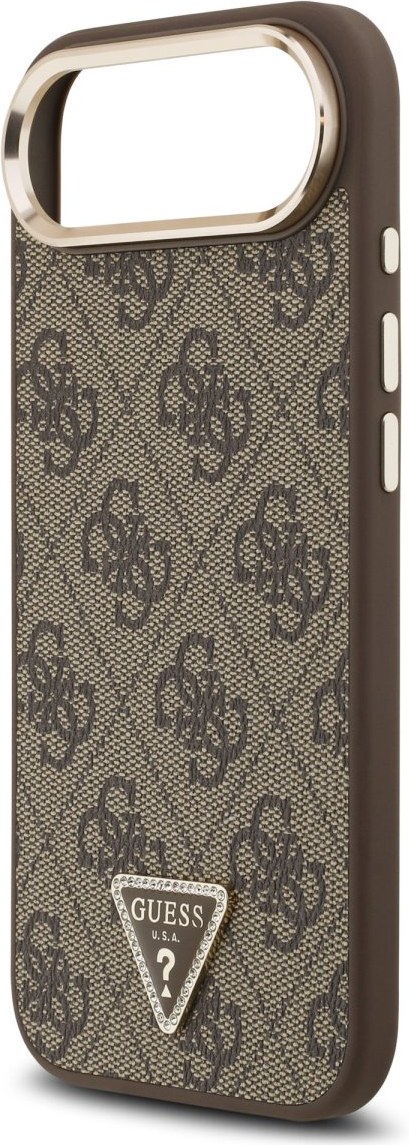 Guess PU Leather 4G Triangle Logo Gold Frame MagSafe kryt pre iPhone Air, hnedý