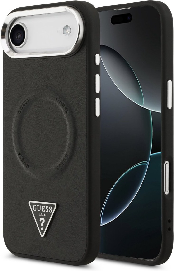 Guess PU Leather Triangle Logo MagSafe kryt pre iPhone Air, čierny