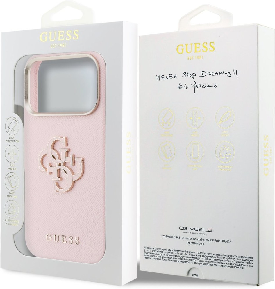 Guess PU Resin Logo kryt pre iPhone 17 Pro Max, ružový