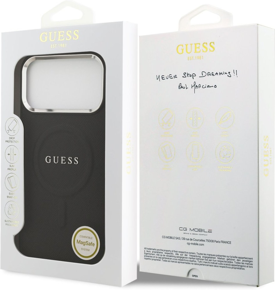 Guess PU Saffiano MagSafe kryt pre iPhone 17 Pro Max, čierny