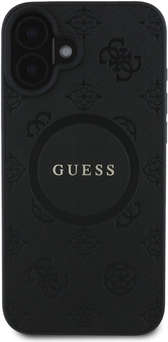 Guess Saffiano Peony Stamp MagSafe kryt pre iPhone 16, čierny