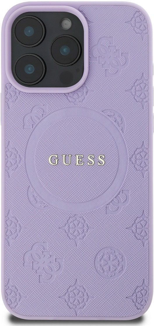Guess Saffiano Peony Stamp MagSafe kryt pre iPhone 16 Pro, fialový