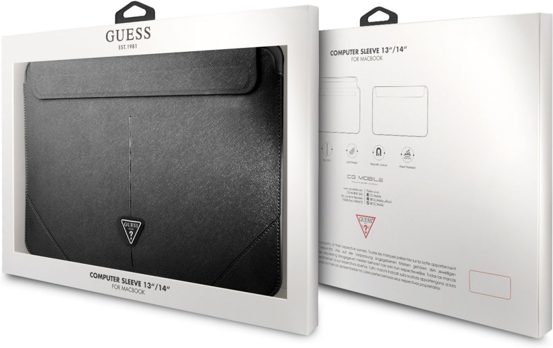 Guess Saffiano Triangle Metal Logo obal na notebook, 13/14", čierny