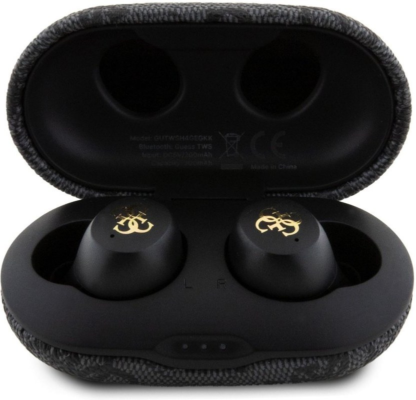Guess True Wireless 4G PU Metal Logo BT5.3 Stereo Earphones, čierne