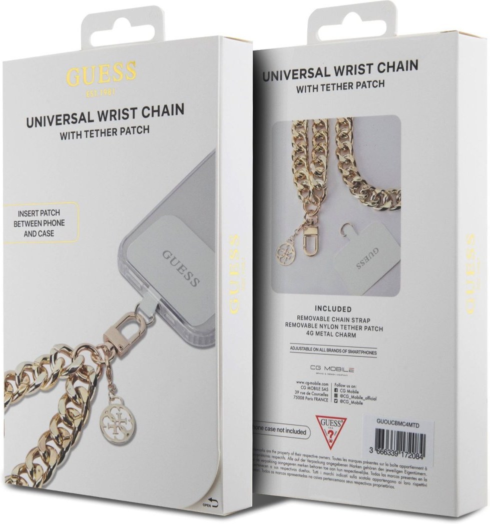 Guess Univerzálny Popruh na Ruku 4G Charm je ideálnym doplnkom pre tých, ktorí hľadajú spojenie elegancie, štýlu a funkčnosti. Je kompatibilný s väčšinou smartfónov a vďaka univerzálnemu použitiu a jednoduchej inštalácii ho môžete využiť v rôznych situáciách. Tento popruh vám umožní nosiť svoje zariadenie bezpečne a zároveň vyzerať skvele. Robustná reťaz s veľkými článkami vyzerá elegantne a súčasne je veľmi praktická. Zlaté detaily, ako je karabínka a prívesok s logom Guess, dodávajú popruhu sofistikovaný nádych. Ľahko ho pripojíte k vášmu telefónu a môžete ho začať okamžite používať. Tento popruh však nie je určený iba pre mobilné telefóny. Môžete ho pripnúť aj na peňaženku, kľúče alebo kabelku.Vlastnosti