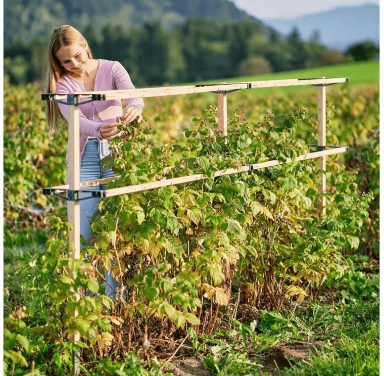 BERRY BUDDY je stabilná podporná konštrukcia pre všetky druhy bobuľovín, ako sú maliny, černice, egreše a ríbezle. Pozostáva z robustnej konštrukcie z kvalitného dreva s certifikátom EU-FSC, 2 výškovo nastaviteľných roštov s výpletom a kovových hrotov na jednoduché ukotvenie. Podpera je navrhnutá tak, aby odolala vonkajším podmienkam a poskytla optimálnu oporu pre vaše ovocie. BERRY BUDDY rastie spolu s vašimi bobuľovými kríkmi. Výškovo nastaviteľné rámy sa ľahko prispôsobia rastu vašich rastlín a poskytujú flexibilnú oporu vo všetkých fázach rastu.Mriežku možno samozrejme ľubovoľne rozširovať, čo ponúka neobmedzené možnosti pre vašu záhradu. Naplánujte si a rozšírte svoju záhradu s bobuľovinami podľa svojich predstáv pomocou ďalšieho prídavného modulu alebo dokonca postavte BERRY BUDDY za roh. Základná dĺžka mriežky 120 cm sa odporúča na podporu 3 až 4 rastlín. Vďaka vysokokvalitným a pevným oceľovým zemným objímkam sa BERRY BUDDY dokonale drží v zemi a prípadne sa dá nainštalovať napevno pomocou záhradnej malty.