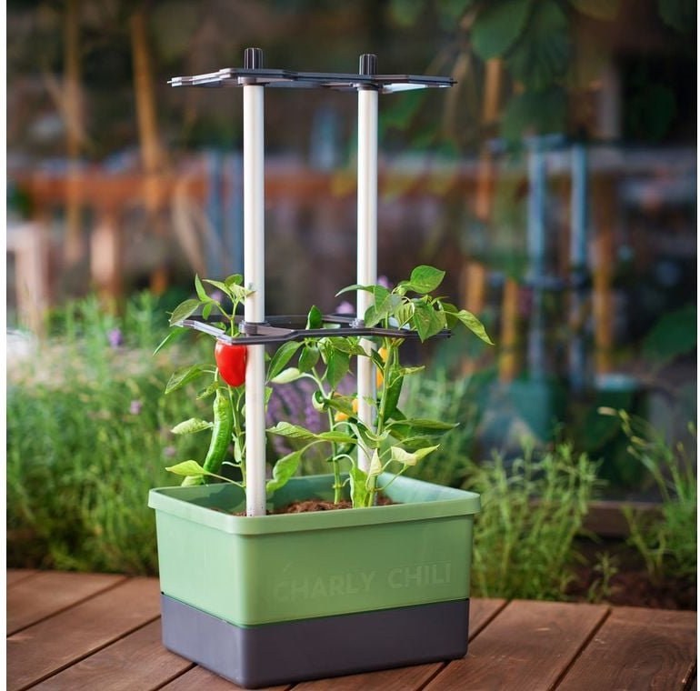 CHARLY CHILI XL od spoločnosti Gusta Garden je väčšia verzia obľúbeného samozavlažovacieho kvetináča CHARLY CHILI. Vďaka dvojnásobnému objemu pôdy a vyššiemu podpornému systému je verzia XL ideálna na pestovanie veľkých druhov byliniek. Vďaka optimálnej veľkosti nádrže na vodu ho stačí dopĺňať vodou len každých niekoľko dní. Robí sa to veľmi pohodlne cez bočný otvor bez toho, aby ste museli kvetináč dvíhať.Robustný rám dokonale dopĺňa popínavý systém vyvinutý špeciálne pre chilli papričky. Vysoko výnosné rastliny sú tak optimálne podporované vo svojom raste. Vďaka inteligentnému dizajnu sa CHARLY CHILI hodí takmer kamkoľvek na balkóny a terasy. Okrem toho sú všetky komponenty navrhnuté tak, aby sa dali v chladnom období ľahko a priestorovo úsporne skladovať. Vďaka tomu možno umiestniť niekoľko kvetináčov CHARLY CHILI jeden do druhého. Všetko tak budete mať pripravené na použitie na budúcu jar.