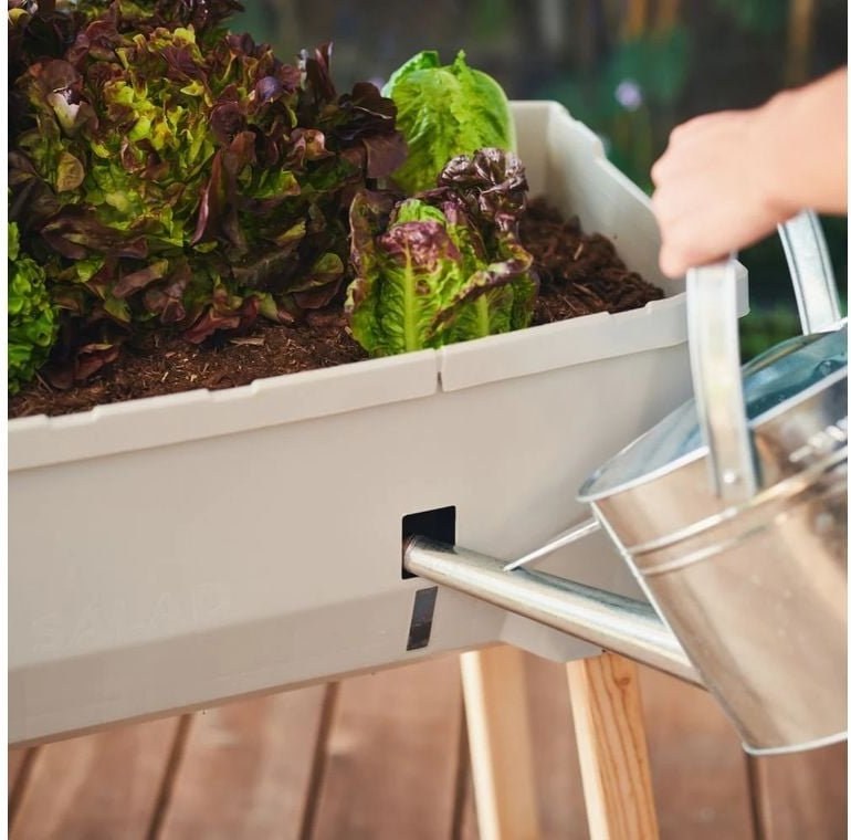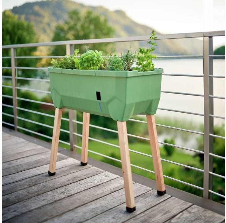 Sammy Salad je inovatívny vyvýšený záhon, ktorý sa dodáva s nádržou na vodu a bez krytu. Umožňuje produkciu lahodných zelených listov počas celého obdobia od jari do jesene. Rozmanitosť a chuťové možnosti sú prakticky neobmedzené, od tradičných až po nové a vzrušujúce chute. Či už dávate prednosť jemne orechovému alebo aromatickému a pikantnému šalátu, Sammy Salad určite uspokojí všetkých milovníkov šalátov. S týmto šikovným vyvýšeným záhonom nebolo pestovanie vlastnej zelene nikdy jednoduchšie bez ohľadu na ročné obdobie. So šalátom Sammy Salad je záhradkárčenie hračkou -od hlávkového šalátu a listovej zeleniny až po bylinky.V medziposchodí sa nachádza nádrž na vodu s objemom 15 l. Vďaka tomu rastliny dostanú ideálne množstvo vody bez obáv z premokrenia. Plniaci otvor a okienko na sledovanie hladiny vody sú navrhnuté špeciálne pre potreby vašich rastlín, čo uľahčuje starostlivosť o ne. Sammy Salad je nielen vizuálne príťažlivý, ale aj vysoko funkčný. Dodáva sa už zmontovaný a pripravený na výsadbu, čo si vyžaduje len niekoľko jednoduchých krokov. Budete tiež potrebovať40 litrov zeminy a vami preferované semená alebo sadenice.