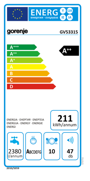 Plne integrovaná vstavaná umývačkaEnergetická trieda: A ++