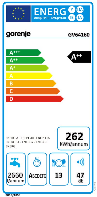 Vstavaná umývačka riaduEnergetická trieda A++