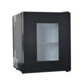 Termochladnička, trieda E, termoelektrický chladiaci systém, termostat, kapacita 23 l, vnútorné LED osvetlenie, priehľadné dvierka, možnosť zámeny otvárania dverí, farba čierna, extrémne nízka hlučnosť