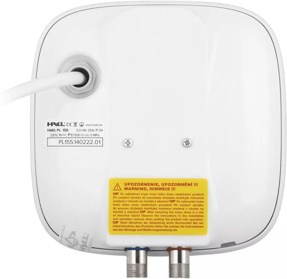 Prietokový ohrievač vody HAKL PL-T je konštrukčne a parametrovo vyvinutý z modelovej rady HAKL PL. Vďaka zosilneným spojom, tesneniam a elektronickej riadiacej jednotke je možné ohrievač inštalovať aj do vodovodného systému na bežné batérie, pomocou vodoinštalačných spojok (fitingov). Svojim konštrukčným riešením a rozmermi je určený pre zapojenie len pre jedno odberové miesto. Jednoduché prichytenie ohrievača pod drezom alebo umývadlom zabezpečíte priskrutkovaním držiaka na stenu, ktorý je štandardne montovaný na zadnom kryte výrobku. Elektronická jednotka pomocou tepelnej poistky a hydraulická ochrana výrazne predlžujú životnosť výhrevnej špirály.Vlastnosti