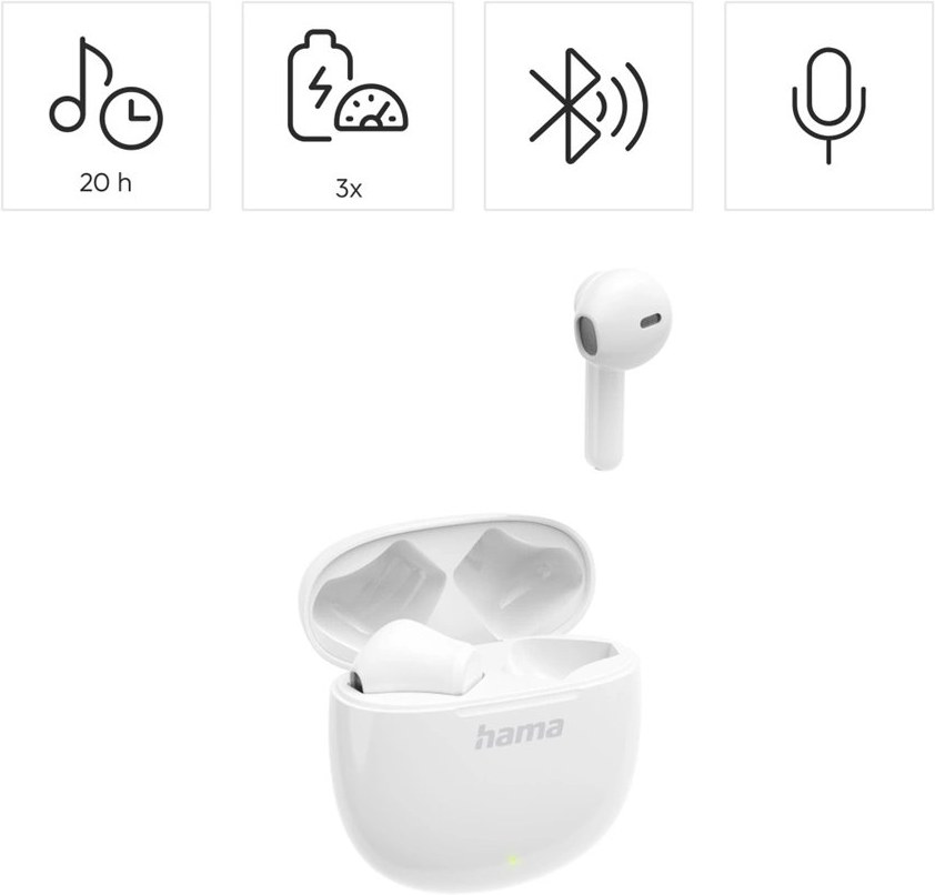 Hama Action One, bluetooth slúchadlá, kôstky, biele