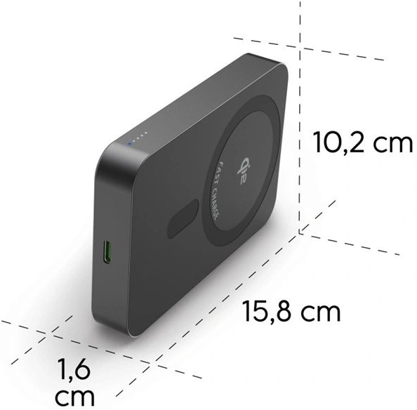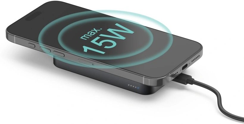 - powerbanka s možnosťou bezdrôtového nabíjania kompatibilných zariadení- nový štandard indukčného nabíjania Qi2 s magnetickým uchytením
