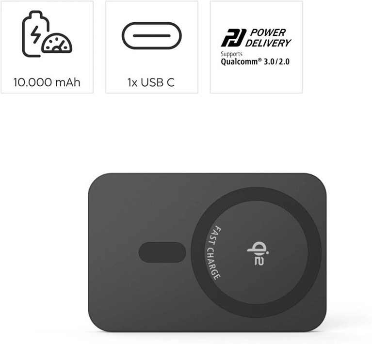 - 1 bezdrôtová powerbanka Qi2- 1 USB C-C nabíjací kábel