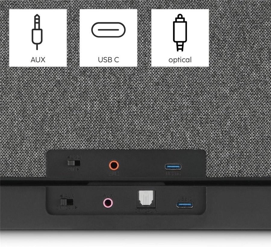 - analógové (jack) aj digitálne (optické) káblové pripojenie základne k zdroju zvuku (napr. TV)