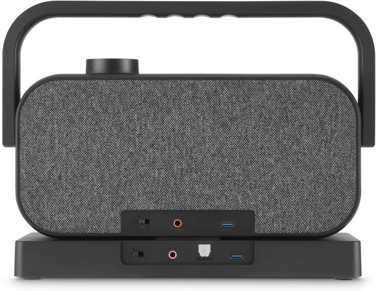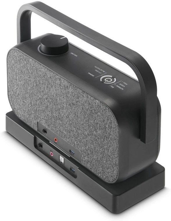 - napájanie reproduktoru: integrovaný akumulátor; konektor pre základňu alebo USB-C zásuvka
