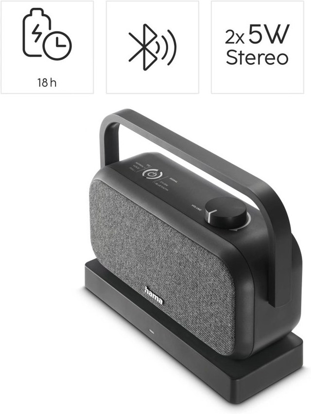 - elegantné prevedenie s textilným povrchom, veľkým regulátorom hlasitosti a pohyblivým držadlom