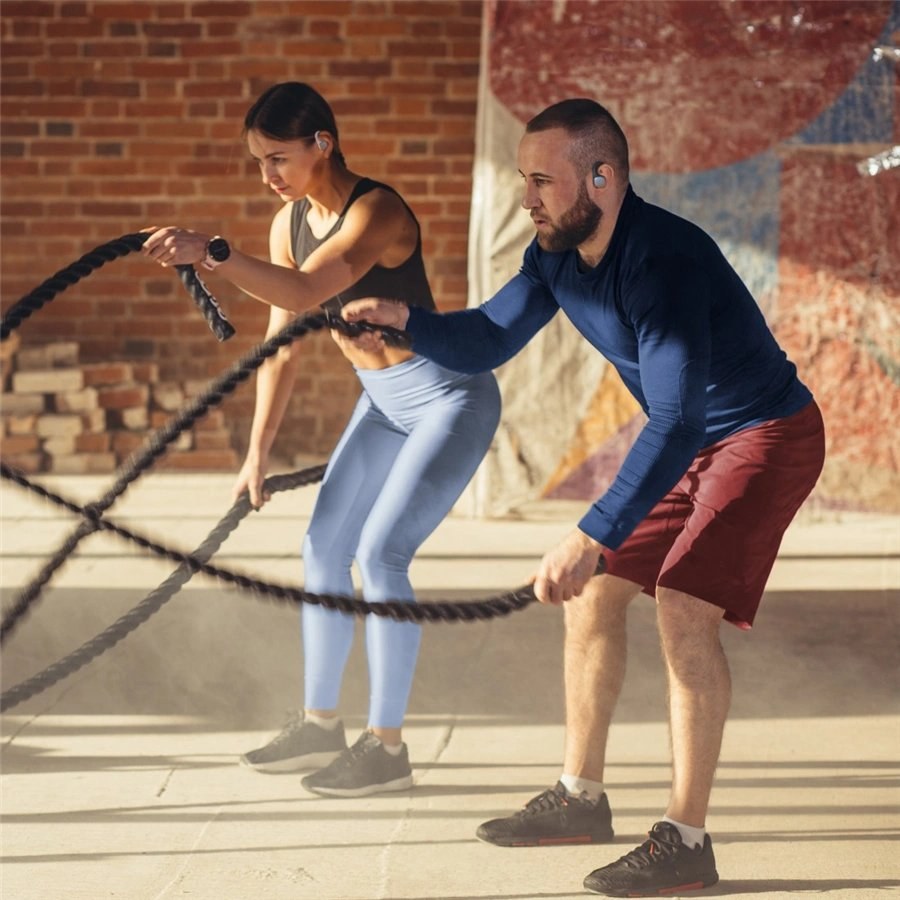 - ľahké, športové bezdrôtové slúchadlá s mikrofónom (TWS) pre počúvanie hudby a telefonovanie cez Bluetooth- integrovaný silikónový klip za ucho zaisťuje bezpečné držanie v ušiach aj pri prudšom pohybe
