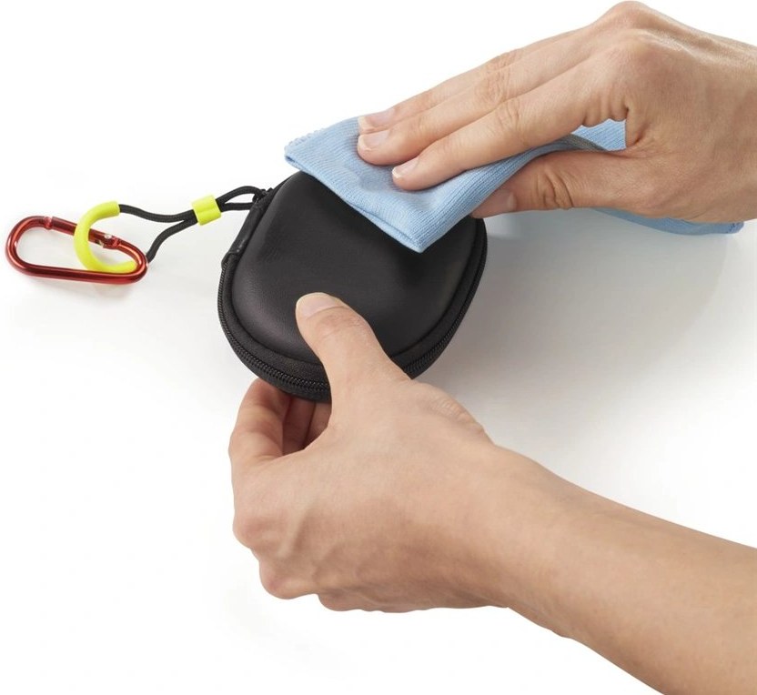 - pevné puzdro na zips s priečinkom napr. pre nabíjací kábel, pútkom a karabínkou pre uschovanie a nabíjanie slúchadiel