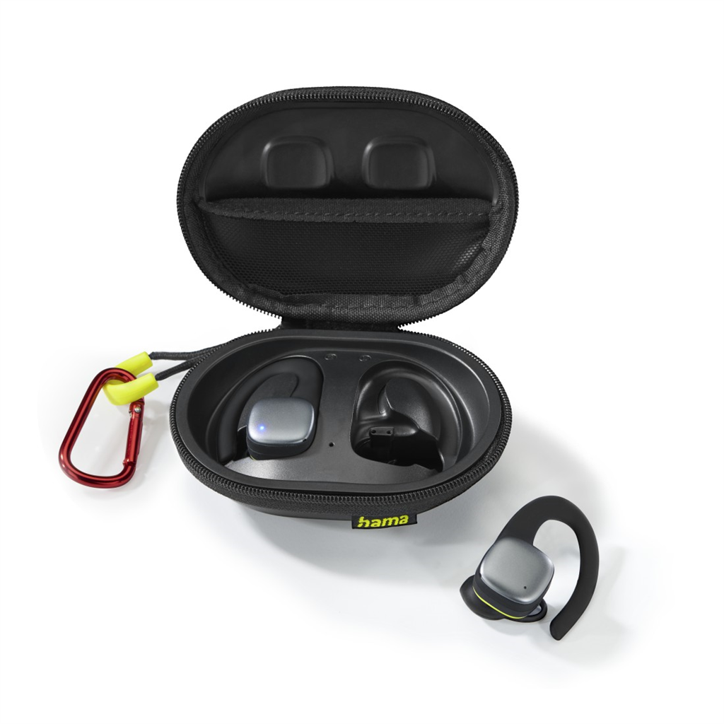 Hama Bluetooth slúchadlá Spirit Athletics s klipom, kôstky, nabíjacie puzdro, čierne
