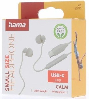 Hama Calm, USB-C slúchadlá s mikrofónom, mini štuple, béžové