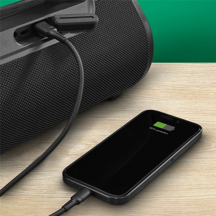ReproduktorVďaka pripojeniu Bluetooth k smartfónu sa batérie vybijú rýchlejšie – vďaka integrovanému pripojeniu USB-A si môžete jednoducho nabiť svoj mobilný DJ telefón na cestách. To znamená, že funkciu powerbanky môžete použiť kedykoľvek, keď ste vonku, aby ste svojmu smartfónu opäť dodali dostatok energie.